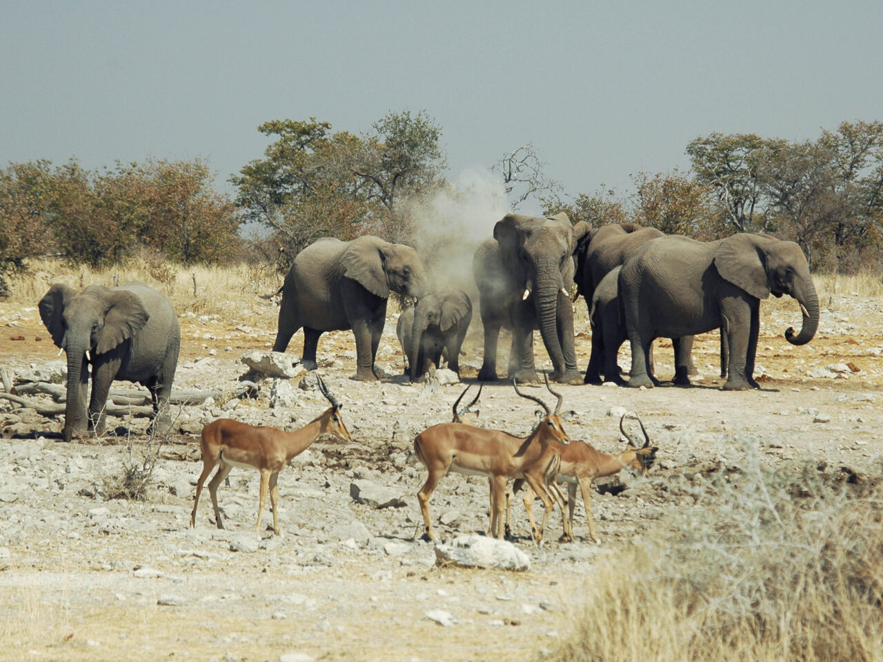 Парк Этоша отличает скудная растительность, что делает очень удобным поиск животных.